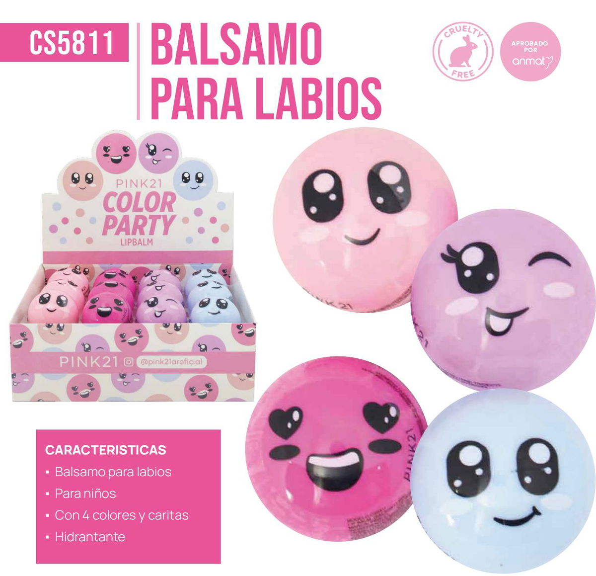 Balsamo para labios caritas apto para niños - Pink 21 3 o 6 UNIDADES